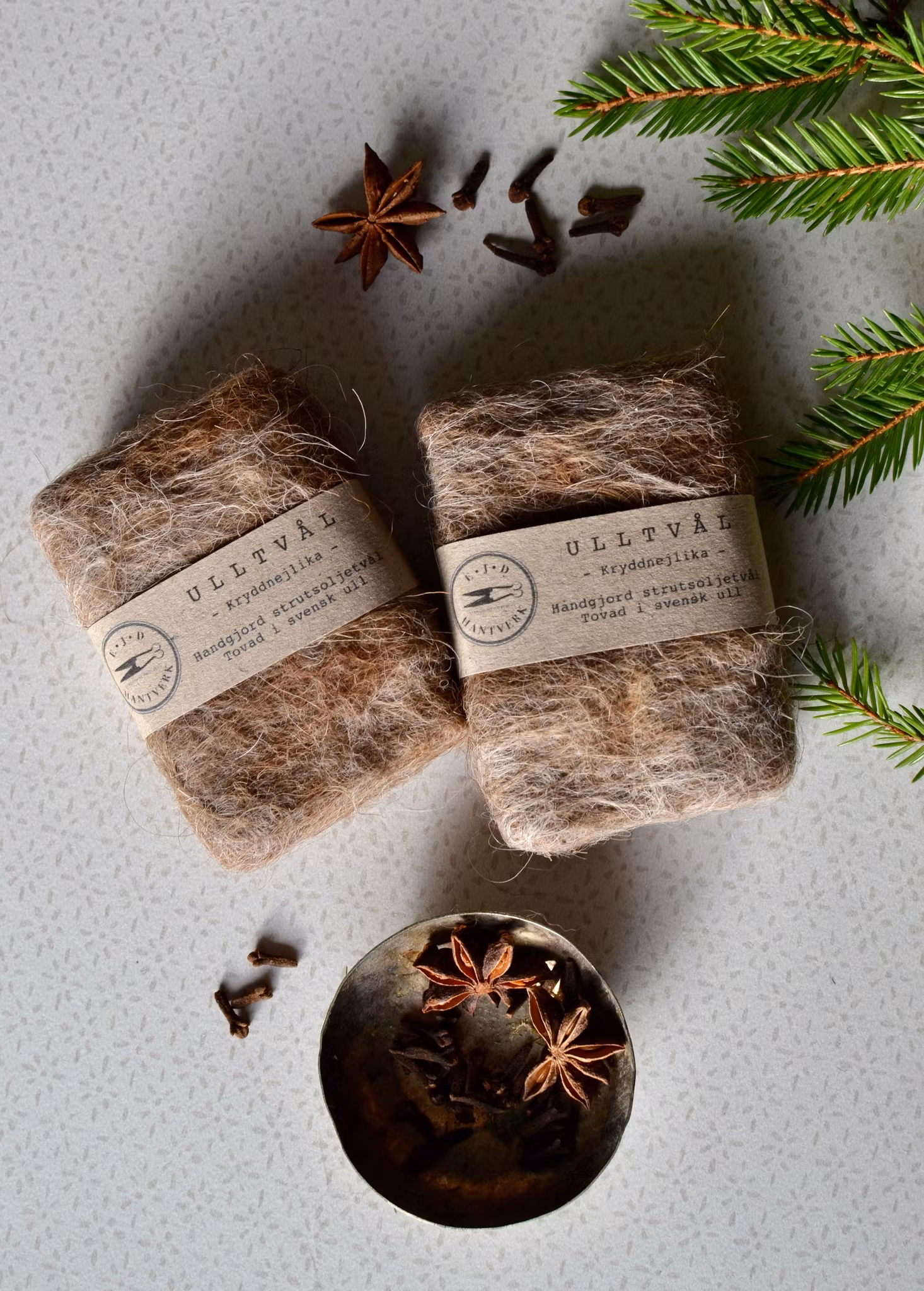 Den populära ulltvålen finns nu även med juldoftande kryddnejlika! Dessutom i unik naturlig brun färg på ullen.